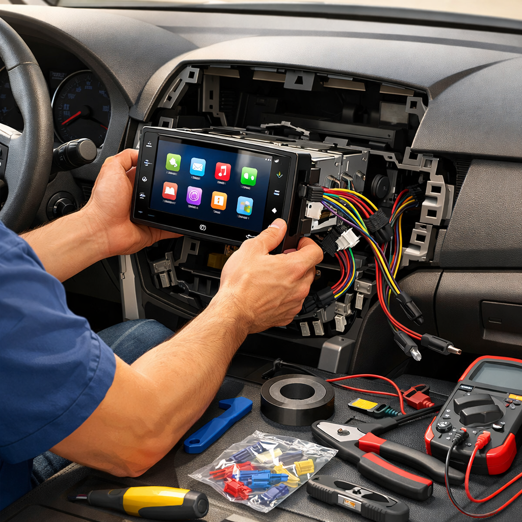 For most single-DIN or double-DIN upgrades, DIY installation commonly takes about 1–3 hours when you have the correct tools, dash kit, and wiring harness. It can take longer if your vehicle has a factory amplifier, steering-wheel controls, or if you’re adding extras like a backup camera or amplifier. Professional shops may finish faster due to experience and specialized tools.