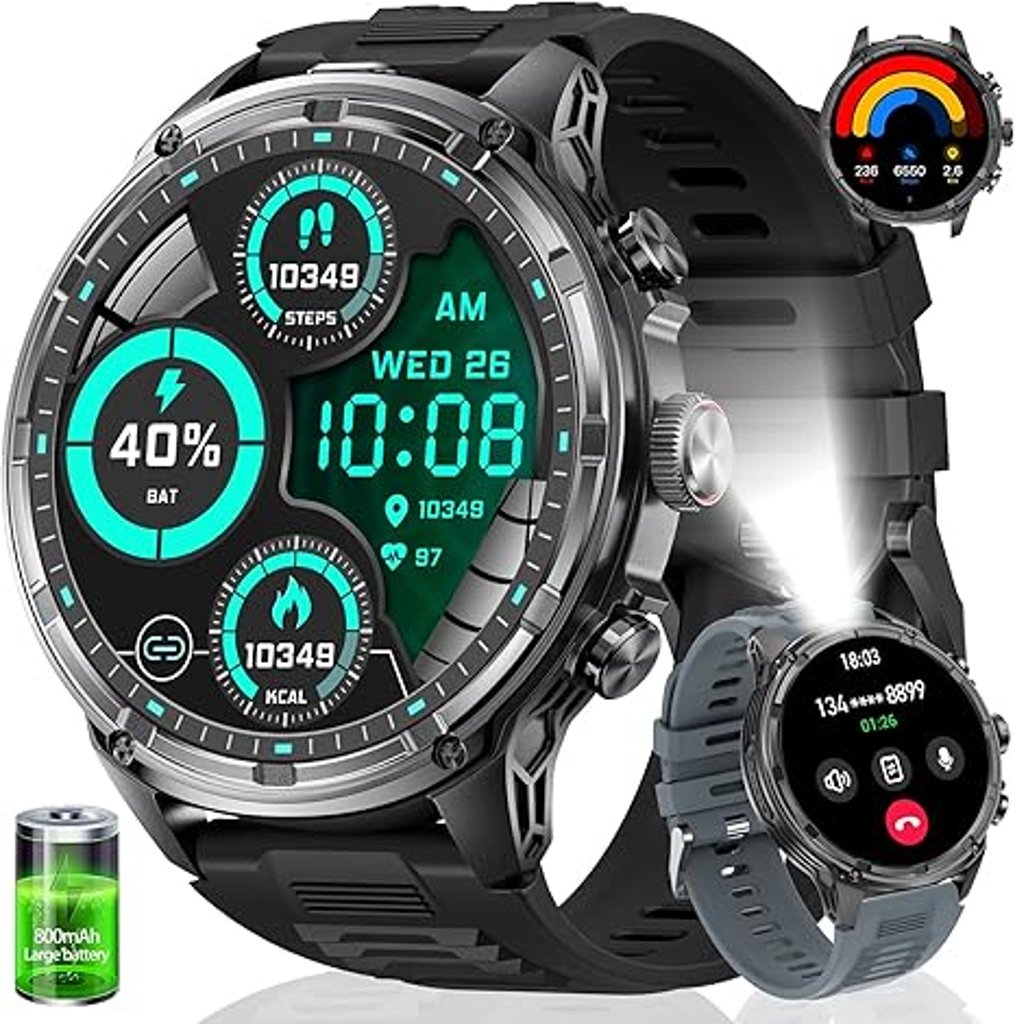 Hirreo’s smart watches for men offer an impressive combination of rugged design, generous battery life, and feature diversity at a competitive price. The 1.85‑inch model stands out with its LED flashlight, 800 mAh battery, and robust IP67 rating, making it ideal for outdoor activities and emergency lighting. The 1.43‑inch version balances style and performance with an AMOLED display, 129 sports modes, and IP68 water resistance. Both models support Bluetooth calling, voice assistants, health monitoring, and customizable watch faces.