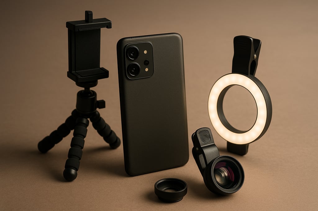 For beginners, the most impactful accessories are a tripod and a Bluetooth remote shutter for stable shots, plus an external lens kit (with wide-angle and macro lenses) to expand your shooting capabilities. These three items address the major limitations of phones (stability and fixed lenses) and are relatively easy to use. As you get more comfortable, you can add lighting (like a small LED light) to improve image quality in low light.