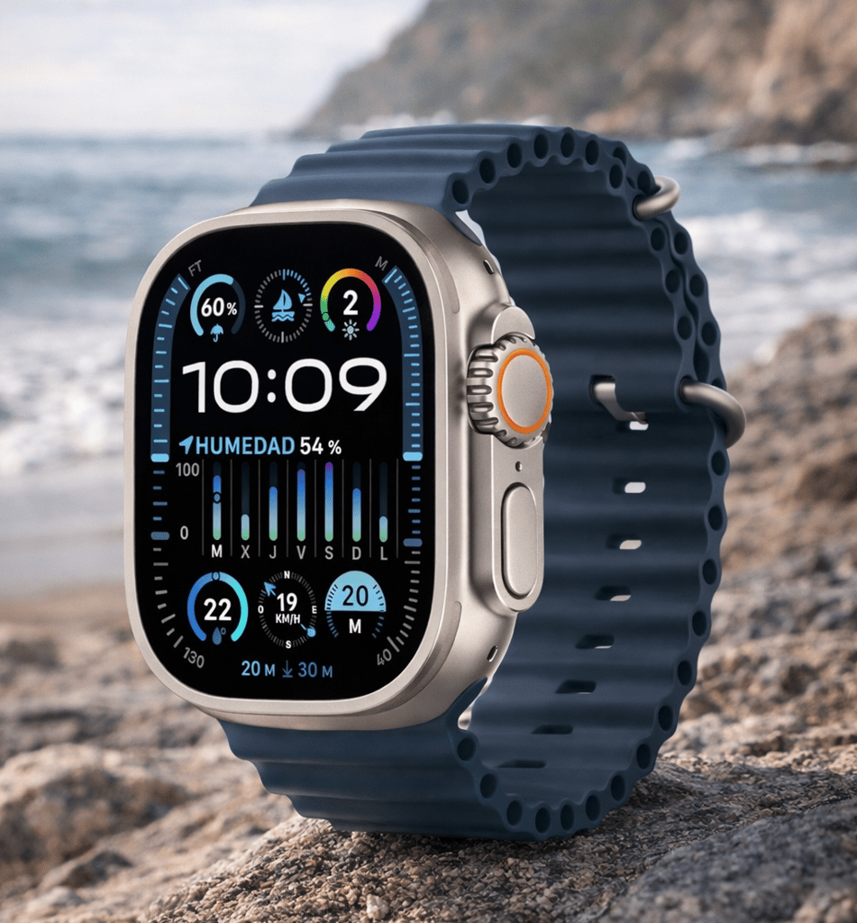 The Ultra 2 includes the widest sensor suite of any Apple Watch. Dual‑frequency GPS (L1 + L5) improves positioning accuracy in dense urban canyons or mountainous terrain. A depth gauge and water‑temperature sensor support diving and freediving via the Oceanic+ appapple.com. Standard sensors—heart‑rate, blood‑oxygen (SpO₂), ECG and skin temperature—enable advanced health metrics such as wrist‑temperature tracking, cycle logging and irregular rhythm notifications.