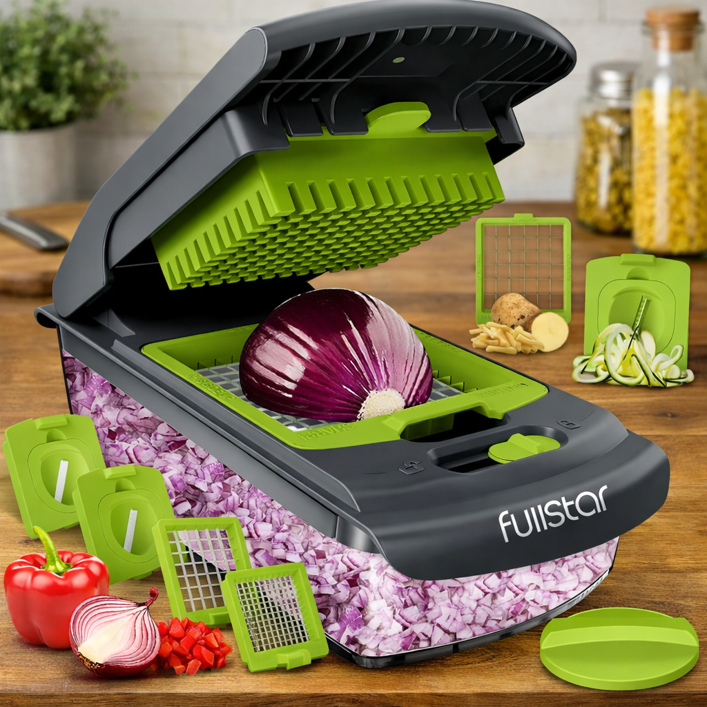 Meal prep is often the most time-consuming part of cookingfreditech.com. A good chopper or spiralizer can slice, dice, and even noodle your veggies in secondsfreditech.com. The Fullstar Vegetable Chopper & Spiralizer is a viral 4‑in‑1 gadget (press‑style dicer plus two spiralizer attachments) that promises to cut onions, potatoes, zucchini and more quickly. In this review we dive deep into its design, performance, and how it stacks up against competitors. We’ll cover step-by-step use, real-world examples (like the TikTok “cucumber salad” trendeonline.com), and answer common questions. By the end, you’ll know if the Fullstar is worth adding to your kitchen.